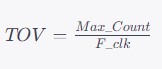 L’overflow del timer si verifica quando il suo valore di conteggio raggiunge il massimo valore possibile, determinato dalla sua dimensione (ad esempio, 8 bit o 16 bit). Per calcolare il tempo di overflow, è necessario conoscere la frequenza del clock del sistema (F_clk) e il valore massimo di conteggio del timer (Max_Count).