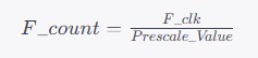 La frequenza di conteggio del timer (F_count) rappresenta il numero di conteggi eseguiti dal timer in un secondo. Questa frequenza è direttamente influenzata dalla frequenza del clock del sistema (F_clk) e dal valore del prescaler (Prescale_Value) applicato al timer.