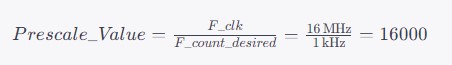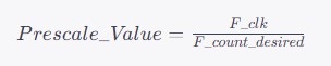 Per calcolare il valore del prescaler necessario per ottenere una frequenza di conteggio desiderata (F_count_desired), è possibile utilizzare la seguente formula:
