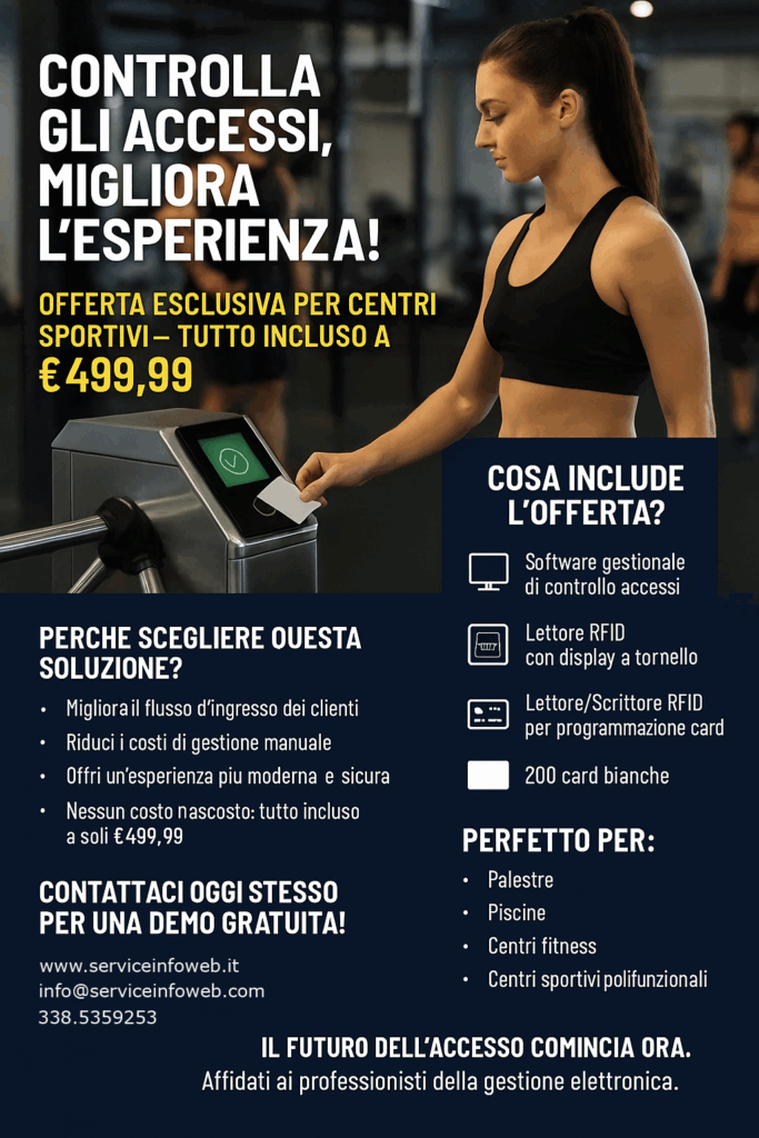🎯 GESTISCI L’ACCESSO AL TUO CENTRO SPORTIVO CON UN SISTEMA COMPLETO E PROFESSIONALE!